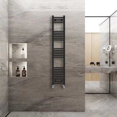 General description The WarmeHaus Straight Heated Towel Rail Warmer in black, measuring 1600x300mm, is a contemporary addition to any bathroom. Its sleek design makes it suitable for both modern and traditional bathroom suites, providing a perfect solution for busy family bathrooms. Technical specifications Dimensions: 1600x300mm Number of bars: 26 (4+6+6+10) Heat output: 1396 BTU Pressure tested to 10 bar Maximum working pressure: 7 bar Manufactured to BS EN 442 Durable high-quality black finish Compatibility and accessories Fixing pack included (complete with plugs and vents) Installation It is recommended to have this towel rail installed by a qualified plumber. Usage This heated towel rail is perfect for drying towels and adding warmth to your bathroom, enhancing comfort and convenience. Other information
