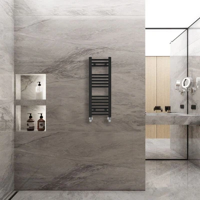 General description The 800x300mm Black Straight Heated Towel Rail is a contemporary addition to any bathroom, combining style and functionality. It is perfect for busy family bathrooms and is available in a variety of sizes and colors to suit different design preferences. Technical specifications Dimensions: 800x300mm Number of bars: 15 (3+5+7) Heat output: 751 BTU Durable high-quality black finish Pressure tested to 10 bar Maximum working pressure: 7 bar Manufactured to BS EN 442 Installation It is recommended to have a qualified plumber install this towel rail. Fixing pack included, complete with plugs and vents. Usage This heated towel rail is designed to keep your towels warm and dry, enhancing comfort in your bathroom. Other information