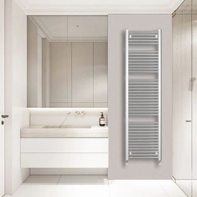 General description The WarmeHaus straight chrome heated towel rail is the perfect solution for your busy family bathroom. Its chrome finish adds a stunning shine that reflects light and creates a sense of balance within the suite. The range is best suited for contemporary styles but can complement any bathroom design and is available in various sizes and colors. Technical specifications Dimensions: 1800x500mm Number of bars: 39 (5+8+13+13) Heat output: 2193 BTU Durable high-quality chrome finish Pressure tested to 10 bar Maximum working pressure: 7 bar Manufactured to BS EN 442 Installation We suggest you ask a qualified plumber to install this item. Usage Perfect for busy family bathrooms, providing a simple yet functional towel rail. Other information