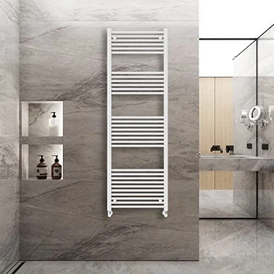 AmazonStylish straight rail ladder style towel radiator; Durable high quality white finish. Number of bars: 30(6+6+8+10); Heat output: 2682 BTU; Tube Diameter: 22mm. Anti leak pressure tested to 10 bars, exceed 200 hours of neutral acid salt spray testing. Manufactured to BS EN 442 and 10 year 'fit and forget' guarantee Included. Package includes 1x1800x600mm Straight Bathroom Heated Towel Rail Radiator and Fixing Pack and Brackets.