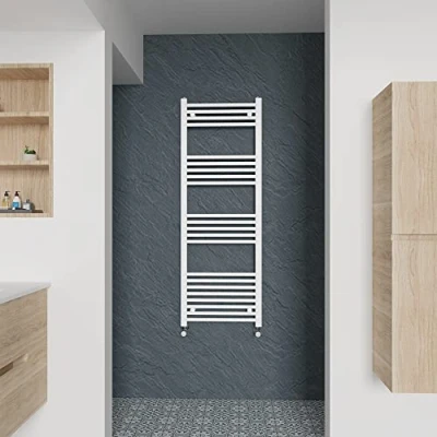 AmazonOur 1400x500mm straight heated towel rail white is the perfect solution for your busy family bathroom. Features: 22 Straight bars - 75-95mm Wall to Centre Tapping - 1737 BTU heat output - 22mm cross tube diameter. Can be use on all UK heating systems. Comes with adjustable wall brackets and fittings. 10 years 'Fit and Forget' guarantee.