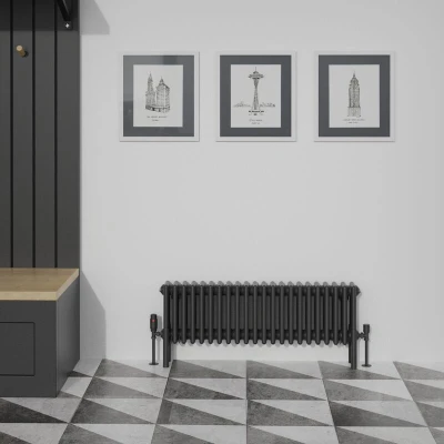 General description This Warmehaus Traditional Black Quadruple Column Radiator (300x1010mm) combines classic Victorian aesthetics with modern performance. Crafted from high-quality steel and finished in a sleek black, it offers a high heat output while maintaining a stunning period style that enhances any room. Technical specifications Dimensions: 300mm x 1010mm Number of columns: 22 Heat output: 2995-3590 BTU Pressure tested to: 10 bar Maximum working pressure: 7 bar Manufactured in accordance with: BS EN 442 Installation Complete with fittings, blanking plug, and bleed valve for easy installation It is recommended to hire a qualified plumber for installation Due to its weight, assistance may be required during handling Usage This radiator is suitable for use on a central heating system, providing efficient heating while adding a touch of traditional elegance to your space. Other information Includes a 10-year 'Fit and Forget' guarantee. Excludes valves.