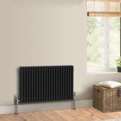 Warmehaus Traditional Cast Iron Style Black Triple Column Horizontal Radiator 600 x 1012mm Perfect for Bathrooms, Kitchen, Living Room