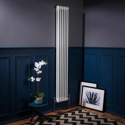 General description The 1800 x 290mm white double vertical column radiator adds a stunning period style to your suite, combining classic Victorian aesthetics with high heat output. Manufactured from high-quality steel and finished with a white gloss, this radiator meets modern expectations while retaining its traditional roots. Technical specifications Dimensions: 1800 x 290mm Depth when fitted: 93mm Pipe Centres: 360mm Number of bars: 6 Heat output: 2761-3518 BTU (at T50 - T60) Pressure tested to 10 bar Maximum working pressure: 7 bar Installation Complete with fittings, plugs, and vents for simple installation It is recommended to ask a qualified plumber to install this item This radiator may require more than one person to handle due to its weight Usage Suitable for use on a central heating system Other information 10 year 'Fit and Forget' guarantee included Excludes valves