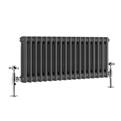 General description Experience the perfect blend of tradition and style with the Warmehaus Traditional Double Anthracite Radiator. This Victorian-style column radiator is designed to make a contemporary statement while honoring classic design elements. With its timeless appeal, this designer column radiator will always remain in vogue. Not only does it enhance your interior aesthetics, but it also provides high heat outputs, ensuring that your spaces remain warm and inviting without sacrificing style. Crafted from high-quality steel, this radiator comes with a 10-year Fit and Forget Guarantee. Technical specifications Material: 1.5mm low carbon steel construction Size: 300 x 830mm Panel: Double Column Finish: Anthracite Number of bars: 18 Pipe Center: 900mm High Heat Output: 1502-1898 BTU (in T50 - T60) Model: Horizontal Double Panel in Anthracite Finish Accreditation: Tested to BS EN442 Triple layered finish to exceed 200 hours of neutral acid salt spray testing Suitable for all UK