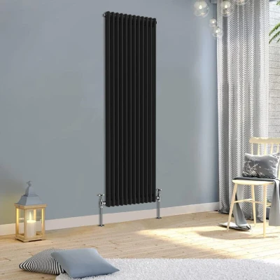 Warmehaus Traditional Radiator Double Column Black Vertical Cast Iron Style Central Heating Tall 1800x560mm