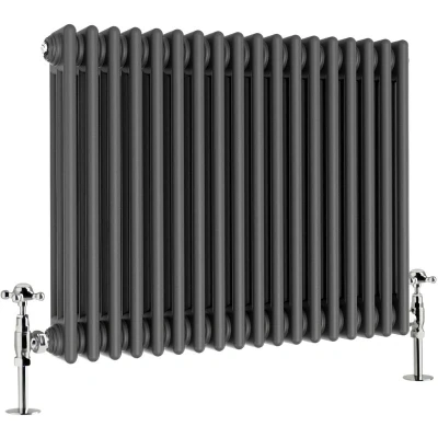 General description Experience the perfect blend of tradition and style with our Victorian-style column radiators, offered in double, triple, and quad column layouts. These radiators are ideal for those looking to make a contemporary statement while honoring classic design elements. With their timeless appeal, designer column radiators will always remain in vogue. Not only do these radiators enhance your interior aesthetics, but they also provide high heat outputs, ensuring that your spaces remain warm and inviting without sacrificing style. Technical specifications Material: 1.5mm low carbon steel construction Size: 600 x 830mm Panel: Triple Column Finish: Anthracite Number of bars: 18 Pipe Center: 900mm High Heat Output: 3593-4566 BTU (in T50 - T60) Model: Horizontal Triple Panel in Anthracite Finish Accreditation: Tested to BS EN442 Triple layered finish to exceed 200 hours of neutral acid salt spray testing Suitable for all UK central heating systems Installation Each unit is