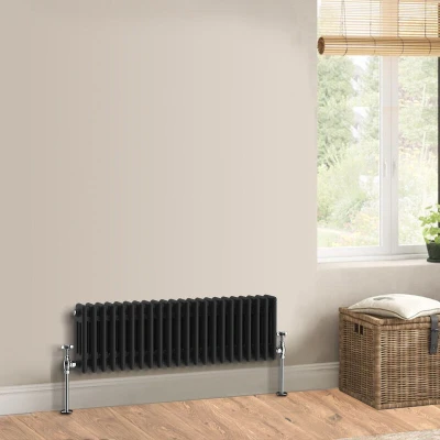Warmehaus Traditional Radiator Triple Column Black Horizontal Cast Iron Style Central Heating 300x1010mm