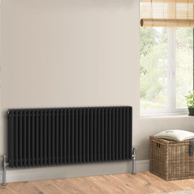 Warmehaus Traditional Radiator Triple Column Black Horizontal Cast Iron Style Central Heating 600x1460mm