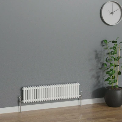 Experience the perfect blend of tradition and style with our Victorian-style column radiators, offered in double, triple, and quad column layouts. These radiators are ideal for those looking to make a contemporary statement while honoring classic design elements. With their timeless appeal, designer column radiators will always remain in vogue. Not only do these radiators enhance your interior aesthetics, but they also provide high heat outputs, ensuring that your spaces remain warm and inviting without sacrificing style. Crafted from high-quality steel, all of our radiators come with a 10-year Fit and Forget Guarantee. Each unit is supplied complete with all necessary fittings and fixings for convenient wall mounting, making installation a breeze. Features and Benefits: Traditional cast iron radiators Dimension: (H x W) 300x1190mm Horizontal double panel Heat output 2170 - 2740 BTUs Weight: 19.45kg Durable high quality white finish Number of bars: 26 10 years fit and forget guarantee