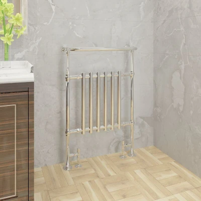 General description The Traditional 952x659mm Heated Towel Rail Bathroom Radiator in Chrome combines the elegance of a Victorian design with the practicality of a towel rail and radiator. This stylish hybrid offers a high heat output, making it perfect for traditional bathroom suites in a modern setting. Technical specifications Dimensions: 952x659mm Pipe Center: 584mm Number of bars: 6 Heat output: 1002 BTU Durable high-quality chrome finish Pressure tested to 10 bar Maximum working pressure: 7 bar Manufactured to BS EN 442 Installation It is recommended to have this item installed by a qualified plumber. Other information Includes a 10-year Fit and Forget guarantee (applies only to water leaks). Fixing pack included with plugs and vents. Images for illustration purposes - colors may differ depending on your device screen and lighting.