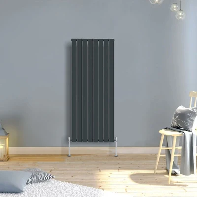 General description The Warmehaus Vertical Radiator Flat 1600 x 546mm Single Anthracite features a sleek and minimalistic design available in Black, White, Chrome, and Anthracite finishes. Its understated elegance enhances the aesthetic of any contemporary space, making it suitable for bathrooms, kitchens, or any area in your home. With a range of sizes available, this radiator is perfect for both large and small spaces, blending effortlessly with various color schemes to create a cozy or chic atmosphere. Technical specifications Dimensions: 1600 x 546mm Number of Bars: 8 Depth when fitted: 85mm Pipe Centres: 616mm Heat output: 3310-4184 BTU (at T50 - T60) Pressure tested to 10 bar, maximum working pressure: 7 bar Manufactured to BS EN 442 Durable high-quality Anthracite finish 10-year "fit and forget" guarantee Installation It is recommended to have a qualified plumber install this radiator. A fixing pack is included, complete with plugs and vents. Note that valves are not included.