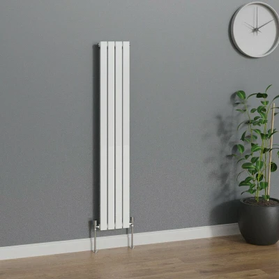 General description The WarmeHaus Vertical Flat Panel Radiator combines sleek design with functionality, available in multiple finishes including Black, White, Chrome, and Anthracite. Its minimalistic style enhances the aesthetic of any contemporary space, making it suitable for bathrooms, kitchens, or other areas in your home. With a range of sizes available, this radiator is perfect for both large and small spaces, seamlessly blending with various color schemes to elevate your home decor. Technical specifications Dimensions: 1600 x 272 mm (H x W) Heat output: 1654 - 2092 BTUs Weight: 10 kg Durable high-quality white finish Number of bars: 4 Pressure tested to 10 bar, maximum working pressure: 7 bar Manufactured to BS EN 442 Installation We recommend hiring a qualified professional for installation. Fixing pack included, complete with plugs and vents. Usage Suitable for use on a central heating system. 10 years fit and forget guarantee.