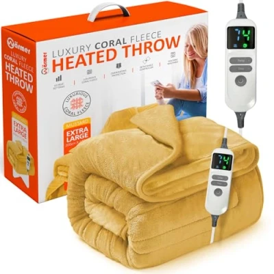Warmer Electric Heated Throw Blanket Digital Controller 9 Hour Timer, Heat Settings, Auto Shutoff, Detachable Machine Washable Extra Large 200cm x 130cm