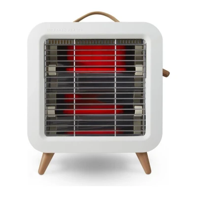 The heater's modern cream casing enhances its aesthetic appeal, making it a stylish addition to any contemporary home. Its Scandinavian design, complemented by a leather carry handle, merges functionality with elegance, ensuring it seamlessly fits into your home décor.