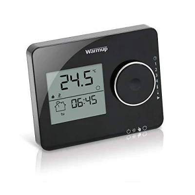 The Warmup Tempo Digital Thermostat combines a modern design with an intuitive interface, offering convenient programmable control for all Warmup electric underfloor heating systems. With its user-friendly features, you can easily program heating start and end times to achieve your desired comfort temperature in just a few simple steps. Whether you prefer a weekly, 5-2 day, or daily basis, the Tempo adapts to your needs and requirements. The thermostat features a better easy-to-use interface and intuitive design, making it effortless to navigate and operate. Its stylish and contemporary design adds a touch of elegance to any room, while the clear screen display shows program details, room temperature, and current time, providing you with all the necessary information at a glance. Adjusting settings is a breeze with the convenient dial and sliders.