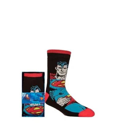 Why can’t keeping your feet warm be fun as well? No need for boring slippers when, like Clark Kent, you can come home, get out of your everyday footwear and change into… Super-Relaxed Guy (and no need to jump into a phone booth to do it!) These SOCKSHOP DC Superman Gift Boxed Slipper Socks will keep your feet super-warm and cosy, because they’re fully lined with Sherpa fleece, creating their very own thermal super powers! Our SOCKSHOP DC Superman Gift Boxed Slipper Socks pull up to crew length for warm feet and ankles, and have a knitted outer with a dynamic, full length, full colour Superman image. Silicone dot grips on the soles create an anti-slip tread that will keep you safely, securely anchored to slippy surfaces like tiles and laminate floors. The slipper socks come in their own gift box too, making them ideal as a present to treat someone to.