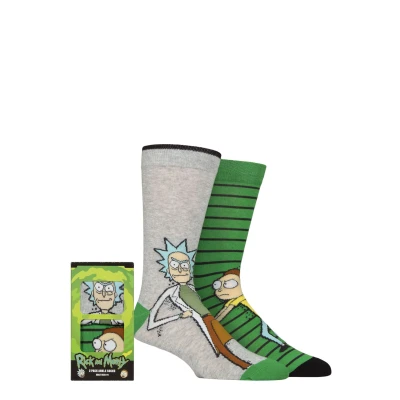 To be honest, it’s Morty-fying that you don’t have some te-Rick-fic Rick and Morty socks… but we can solve that for you with this twin pack of SOCKSHOP Rick and Morty Gift Boxed Cotton Socks! Now you’ve got no excuse — It’s time to get schwifty! This colourfully boxed set contains two styles of crew length socks, both with full length, full colour cartoon designs of the often less-than-happy dimension-hopping, space-travelling grandfather and grandson. Guaranteed to impress fellow fans, (but get you instantly arrested in some galaxies and alternate timelines) these sci-fi socks are cotton rich, giving the yarn a soft, smooth feel, and are knitted in a fine gauge for a great fit and total comfort.