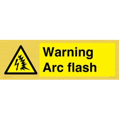 W042 : Arc flash This sign is made from vinyl gold sticker Gold metal effect sticker for flat, clean surfaces. Not for rough, plastic, or dusty surfaces. 62 landscape Sign Text: Warning Arc flash