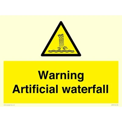 W517 : Artificial waterfall/water cascade This sign is made from vinyl photoluminescent sticker A3 landscape Sign Text: Warning Artificial waterfall