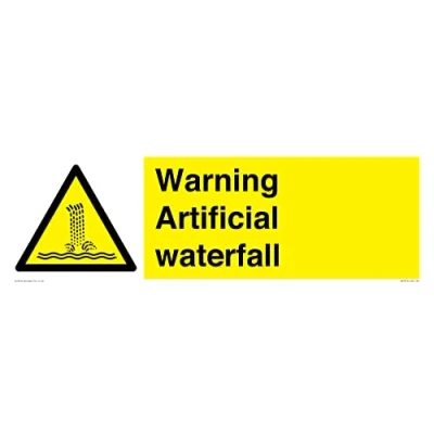W517 : Artificial waterfall/water cascade This sign is made from vinyl / sticker Air Release vinyl makes it easy to stick to flat, clean surfaces without bubbles. Not for rough, plastic or dusty surfaces. 62 landscape Sign Text: Warning Artificial waterfall