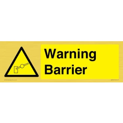 W902 : Barrier This sign is made from vinyl gold sticker Gold metal effect sticker for flat, clean surfaces. Not for rough, plastic, or dusty surfaces. 31 landscape Sign Text: Warning Barrier