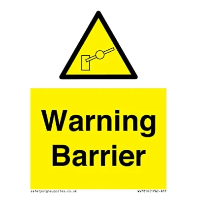 W902 : Barrier This sign is made from plastic semi rigid 1mm self adhesive A7 portrait Sign Text: Warning Barrier