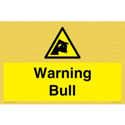 W034 : Bull This sign is made from vinyl gold sticker Gold metal effect sticker for flat, clean surfaces. Not for rough, plastic, or dusty surfaces. A4 landscape Sign Text: Warning bull