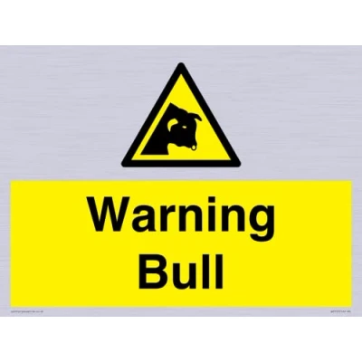 W034 : Bull This sign is made from vinyl silver sticker A3 landscape Sign Text: Warning bull