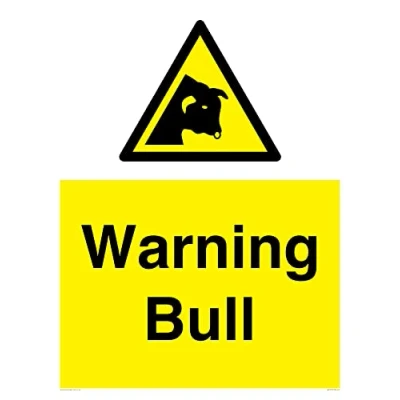 W034 : Bull This sign is made from vinyl / sticker Air Release vinyl makes it easy to stick to flat, clean surfaces without bubbles. Not for rough, plastic or dusty surfaces. A1 portrait Sign Text: Warning bull