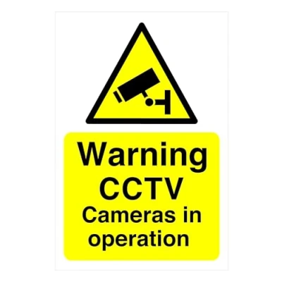 Warning CCTV Cameras in operation Safety sign Material Type: Hight tack self adhesive vinyl and laminated for extra UV durability (environmentally friendly) Sign measures: 150mm x 100mm This sign conforms to EN ISO 7010:2012 standards, featuring a centrally positioned black pictogram or text against a contrasting background