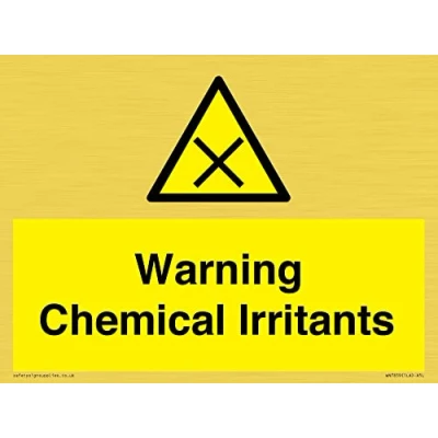 W904 : Harmful This sign is made from vinyl gold sticker Gold metal effect sticker for flat, clean surfaces. Not for rough, plastic, or dusty surfaces. A5 landscape Sign Text: Warning Chemical Irritants