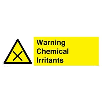 W904 : Harmful This sign is made from vinyl / sticker Air Release vinyl makes it easy to stick to flat, clean surfaces without bubbles. Not for rough, plastic or dusty surfaces. 41 landscape Sign Text: Warning Chemical Irritants