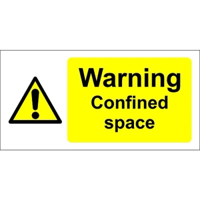 Warning Confined Space Safety Sign Self adhesive sticker 200mm x 100mm Remove backing film and apply to dry, smooth, oil free surface. Digitally printed and laminated for extra durabillity