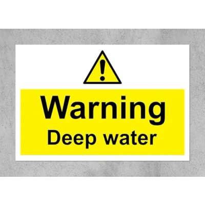 Warning deep water Safety sign 1mm Plastic sign Digitally printed for extra durability Drill and screw in position or use double sided tape to mount onto suitable surface.