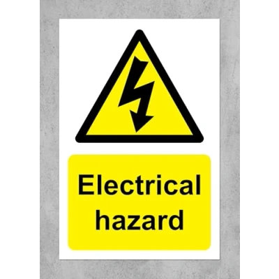 Warning Electrical hazard electricity safety sign 1mm Plastic sign Digitally printed for extra durability Drill and screw in position or use double sided tape to mount onto suitable surface.