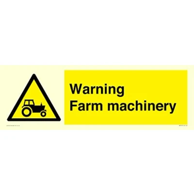 W916 : Farm machinery This sign is made from vinyl photoluminescent sticker 62 landscape Sign Text: Warning Farm machinery