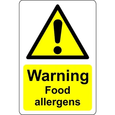 Warning food allergens safety sign Self adhesive sticker 300mm x 200mm