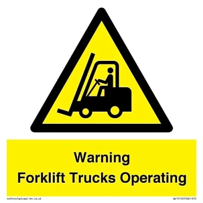 W014 : Forklift trucks and other industrial vehicles This sign is made from vinyl high tack A stickier sticker. Uses a stronger adhesive to make it more suitable for plastic surfaces like Wheelie Bins or where the sticker might get rubbed. S15 square Sign Text: Warning Forklift Trucks Operating