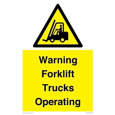 W014 : Forklift trucks and other industrial vehicles This sign is made from vinyl / sticker Air Release vinyl makes it easy to stick to flat, clean surfaces without bubbles. Not for rough, plastic or dusty surfaces. A4 portrait Sign Text: Warning Forklift Trucks Operating