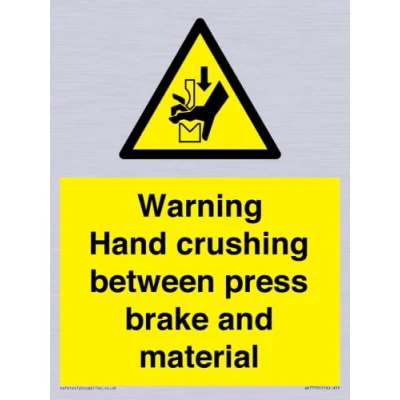 Warning Hand crushing between press brake and material Sign 150x200mm A5P