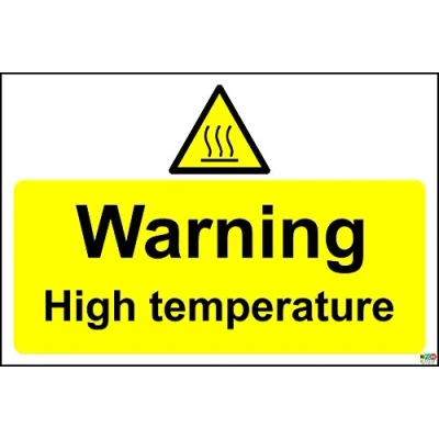 Warning high temperature sign Self adhesive vinyl 150mm x 100mm Digitally printed and laminated for extra durability Remove backing film and apply to dry, smooth, oil free surface.