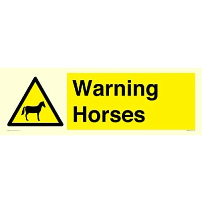 W506 : Horses This sign is made from vinyl photoluminescent sticker 62 landscape Sign Text: Warning Horses