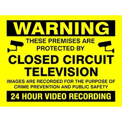 Warning Premises Protected CCTV 24 Hour Video Recording A5 Sticker Yellow/Black