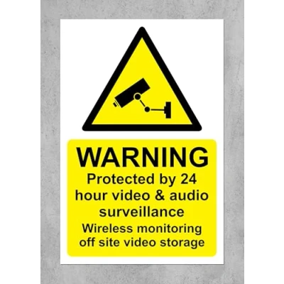 Warning protected by 24 hour video and audio surveillance wireless monitoring off site storage sign 1mm Plastic (200mm x 150mm)