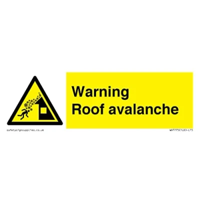 W040 : Roof avalanche This sign is made from vinyl / sticker Air Release vinyl makes it easy to stick to flat, clean surfaces without bubbles. Not for rough, plastic or dusty surfaces. 15 landscape Sign Text: Warning Roof avalanche