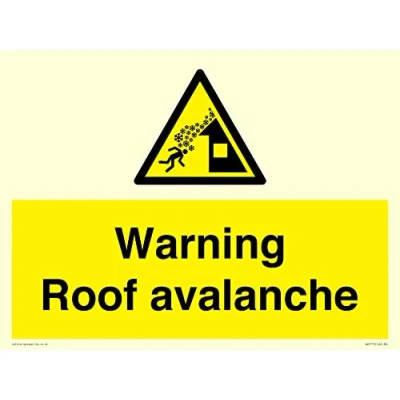 W040 : Roof avalanche This sign is made from vinyl photoluminescent sticker A3 landscape Sign Text: Warning Roof avalanche
