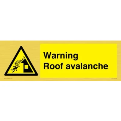 W040 : Roof avalanche This sign is made from vinyl gold sticker Gold metal effect sticker for flat, clean surfaces. Not for rough, plastic, or dusty surfaces. 62 landscape Sign Text: Warning Roof avalanche