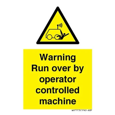 Warning run over by operator controlled machine Sign 50x75mm A8P