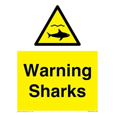 W054 : Sharks This sign is made from vinyl high tack A stickier sticker. Uses a stronger adhesive to make it more suitable for plastic surfaces like Wheelie Bins or where the sticker might get rubbed. A5 portrait Sign Text: Warning sharks